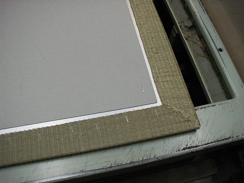 使い捨ての貼り付けかと思いきや、タッカーで丹念に止めてあります。これなら張替えは効くだろうと、依頼されました。
