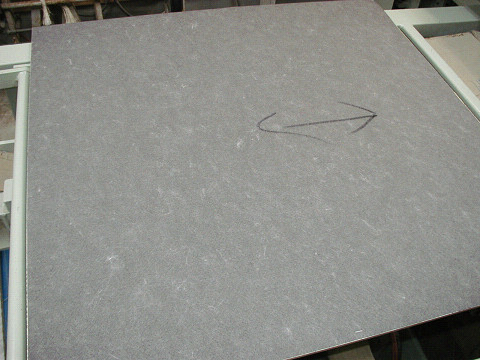 一見 積水の床暖房用の小春に似ていますが違うようですね。芯はよく机や棚などに使われる硬い圧縮材に上下の表面にアルミ箔のようなものを貼り付けてあります。厚みは芯にそのまま施工すれば10ミリ仕上げくらいになる薄さですが、上下にクッション材を入れるため、15ミリ仕上げになっています。